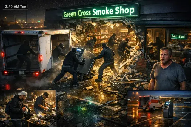 In the early hours of Tuesday around 3:30 a.m., a brazen crew used a U-Haul truck to repeatedly ram the front wall of the Green Cross smoke shop on Houston's North Freeway near Gulf Bank, leaving owner Lou stunned and his new business in ruins. Caught entirely on surveillance video, this extreme break-in underscores the growing vulnerability of small retailers to organized smash-and-grab tactics amid rising urban property crimes.